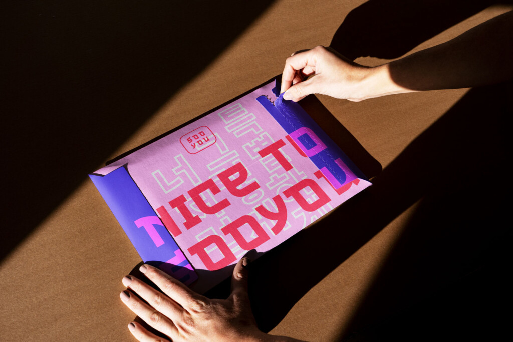 Das Resultat ist ein charakterstarkes Erscheinungsbild mit gesättigten Neonfarben, die an nächtliche Grossstadtlichter erinnern. Mit der zweisprachigen Wortmarke – einmal in lateinischer Schrift, einmal im koreanischen Hangul – zeigt Sooyou, dass zwei Welten zusammenfinden. Soeul meets Luzern. Da ist Sooyou nämlich zu Hause.